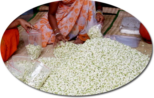 They will only collect buds which are of the correct size and proportion, after which they are brought to our regular store. It is here that these buds will then be weighed carefully, strung together to form string and garlands in our store in the marketplace. The stringing process goes on for hours and is done carefully so that the outcome is impressive to customers. The loose buds, strings and garlands are carefully packed into iceboxes with appropriate amount of ice so that they stay in fresh condition till they reach customer destination. These icebox packages are then loaded carefully onto flights that leave to various destinations from Madurai. The packing has remained intact till the flowers have reached customers in distant locations, which can be accessed only by flight.